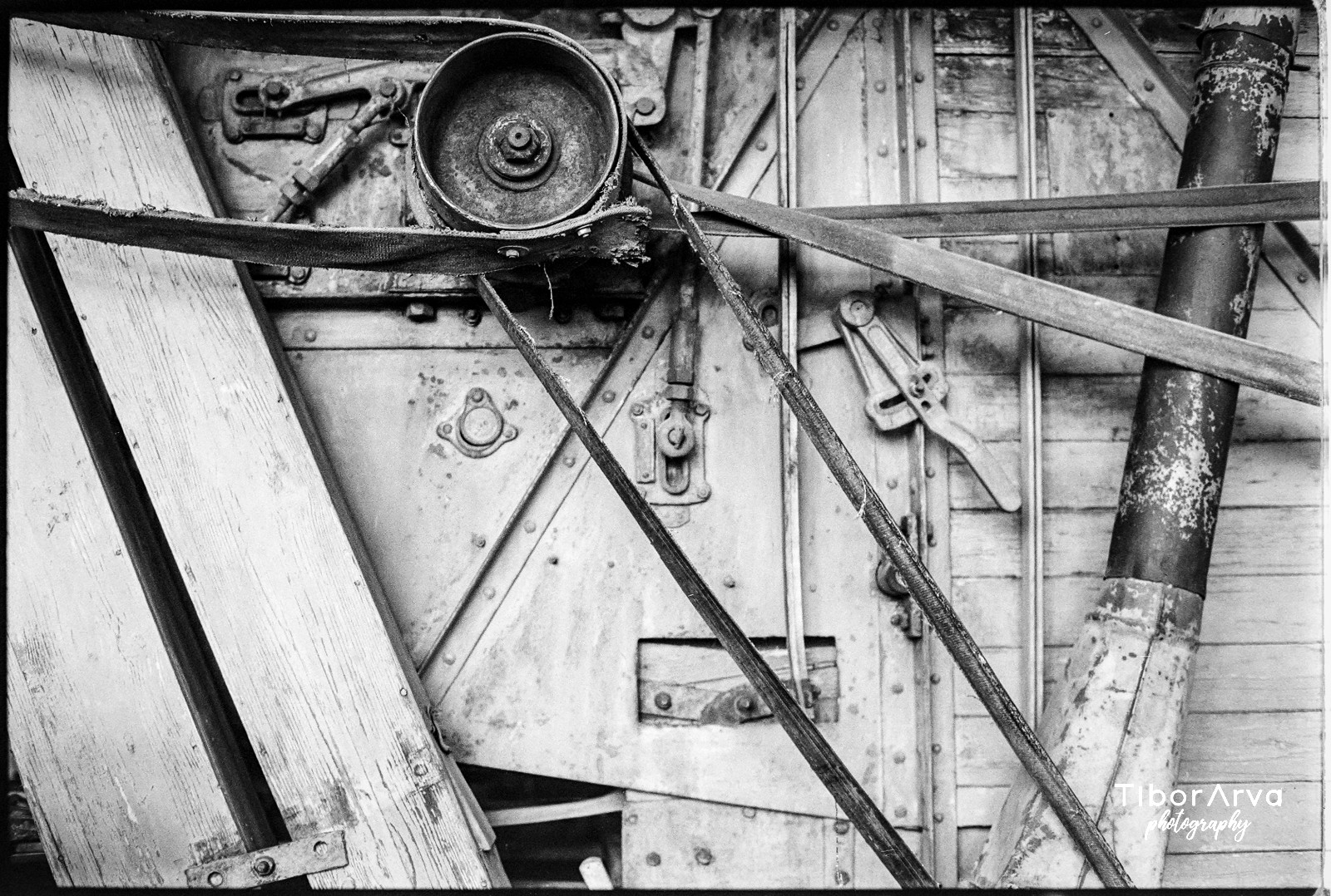 Crno-bela fotografija skida sve što je nebitno. Boja rđe prestaje da bude samo boja i postaje čista tekstura. Svetlost klizi preko metala i otkriva svaku brazdu, svaku udubinu, svaki ožiljak. Zrno filma i zrno metala počinju da pričaju isti jezik.